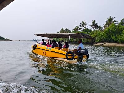 Cruise through the calm backwaters of Poovar, where golden sand meets tranquil blue waters. Enjoy the lush mangroves, floating cottages, and breathtaking sunset views.
